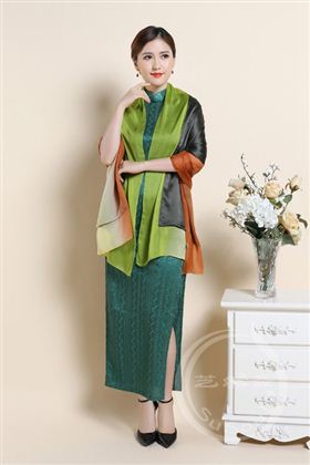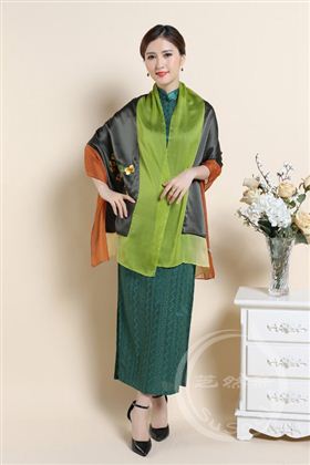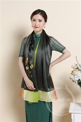 芝然斋精制银杏叶手工刺绣丝巾。旋转飘零的树叶,是秋天温存的呼吸。采用100%桑蚕丝乔其纱和贡缎,质料精良。尺寸50*186厘米。手工刺绣工艺精湛,绚美高贵,沉稳典雅。此刺绣丝巾精品可以用作中国特色的礼物,高级涉外礼品。