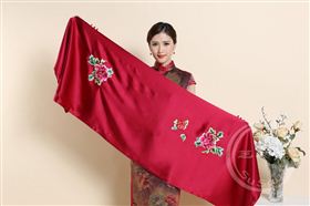 芝然斋精制苏绣真丝牡丹大围巾。妍丽花朵,来自一颗贞静的心。