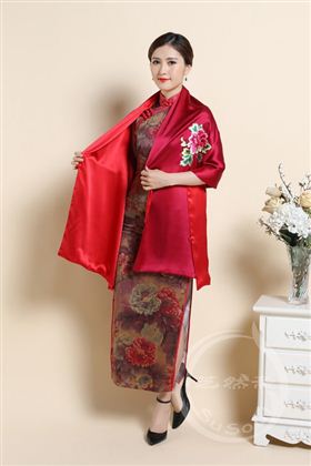 采用上等双层贡缎为底料,100%桑蚕丝。尺寸55*190厘米。雍容华美,沉静婉约。此苏绣大围巾可以用作高端外事礼物,送女性贵宾礼品。