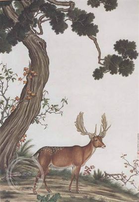 马晋 《古柏麋鹿图》
